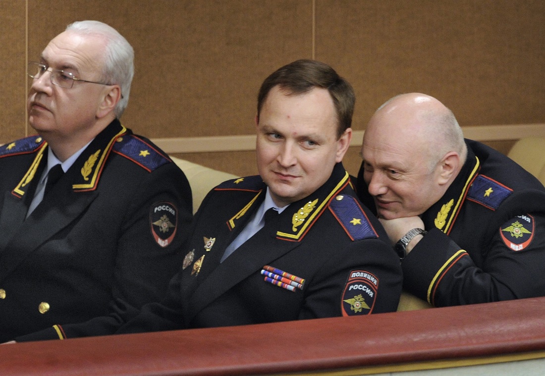 Бывший начальник Главного управления экономической безопасности и противодействия коррупции МВД России Денис Сугробов (в центре). Фото: Сергей Савостьянов / ТАСС