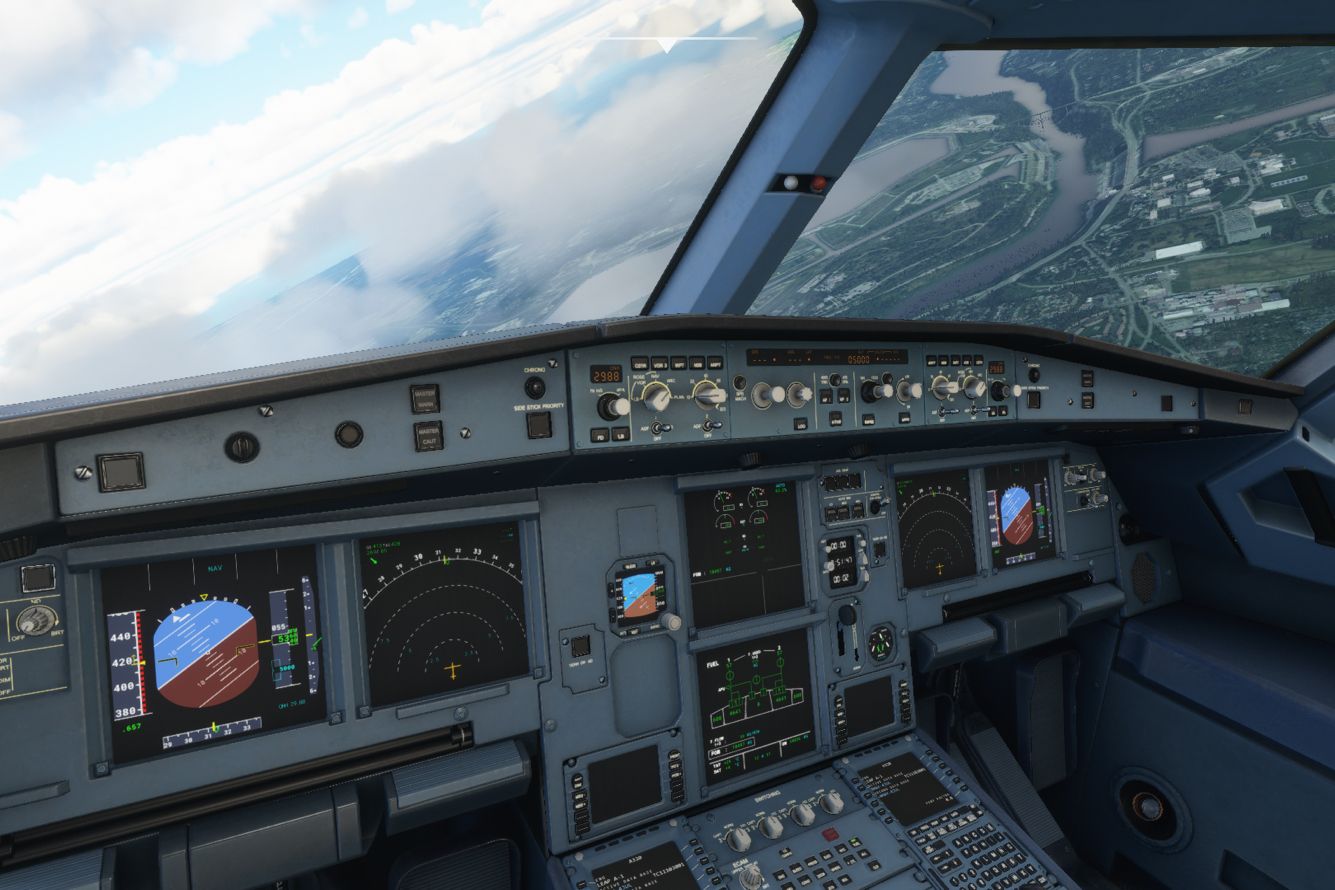 Я никогда не управлял настоящим самолетом, поэтому не могу судить, насколько реалистично передана кабина пилота и элементы управления. Но для дилетанта все выглядит достаточно детально. Большинство кнопок и переключателей на приборной панели интерактивные, поэтому при желании можно спокойно симулировать подробную подготовку к взлету, постройку маршрута и так далее.