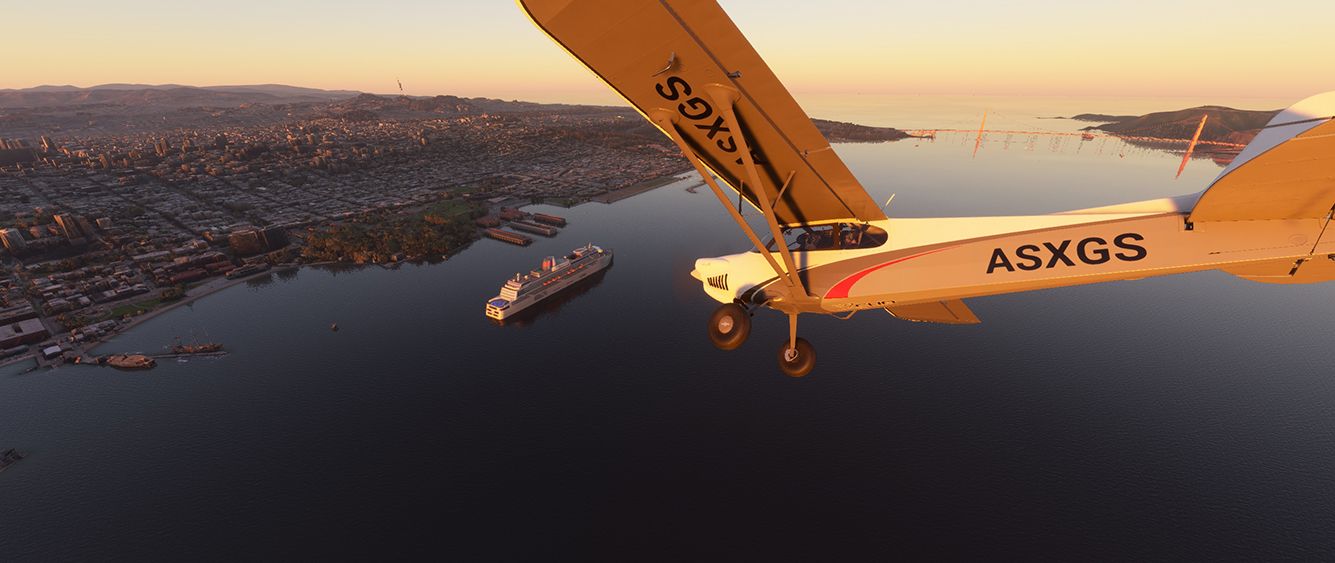 Менять погоду и время суток в MSFS — одно из главных развлечений. Облака в игре порой потрясающе красивы. Закаты и рассветы — тоже. Солнце бликует на крыльях самолета и на воде далеко внизу. И все это можно рассмотреть в деталях прямо в полете — игра предусматривает режим «активной паузы», когда ваш самолет зависает на одном месте, но мир вокруг продолжает жить: машины — ездить по дорогам, погода и время суток — плавно меняться, самолеты других игроков — пролетать далеко в небе. «Активная пауза» особенно полезна, чтобы повертеть камерой и наделать скриншотов: самолета, окружающего мира, снова самолета, здания, к которому удачно подлетел, мелких заклепок на крыле самолета и так далее.