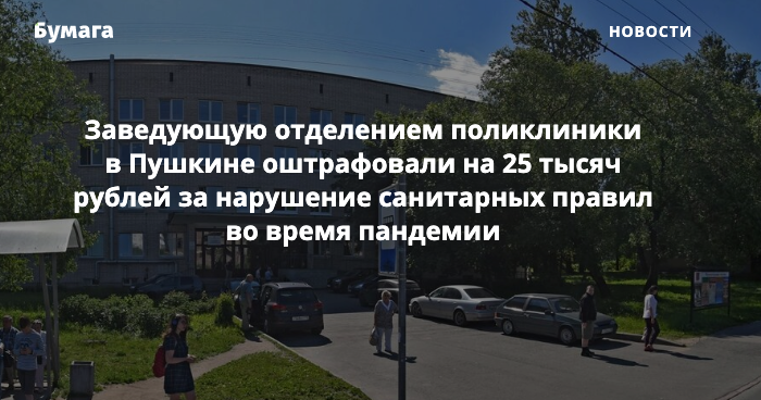 Заведующую отделением поликлиники в Пушкине оштрафовали на 25 тысяч рублей