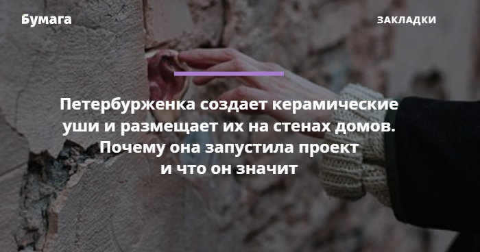 Петербурженка Оксана Афанасьева уже два года размещает на стенах домов на Васильевском острове керамические уши, которые сама изготавливает. Она рассказывает об акции в своем инстаграме.