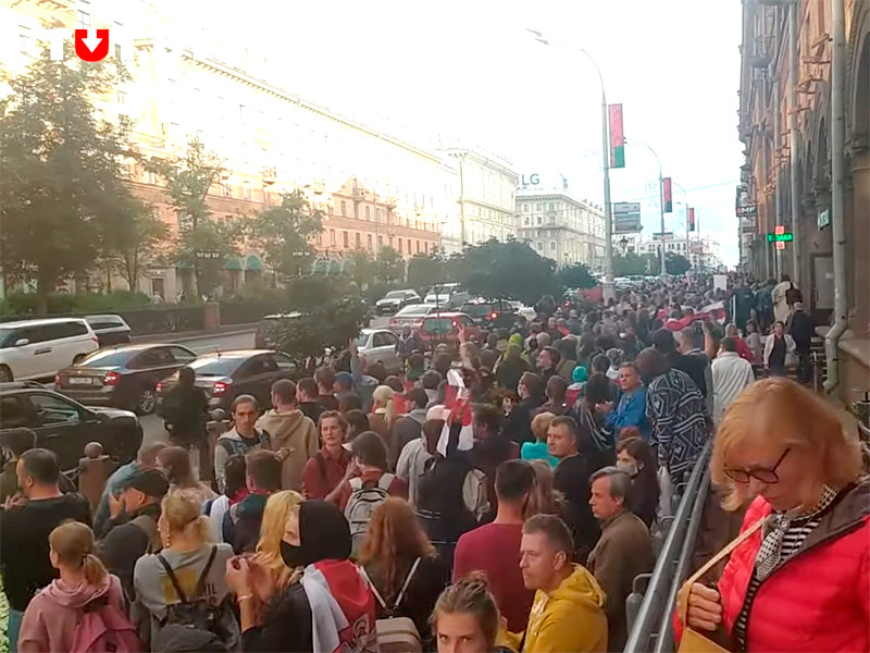 Протестующие в Минске организовали шествие от православного Свято-Духова кафедрального собора на площади Свободы к католическому Красному костелу на площади Независимости, передает "Интерфакс". Акция закончилась задержаниями.