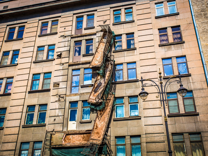 В мае этого года в жилом доме на Кирочной улице, 20 обрушились четыре из восьми балконов. После обследования оставшиеся балконы было решено демонтировать.