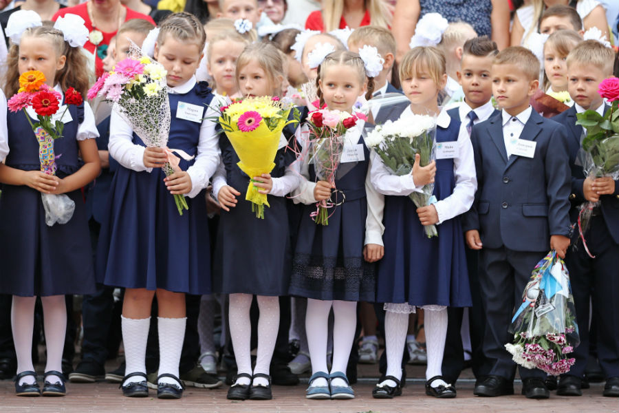 Ученики на торжественной линейке, посвященной Дню знанийФото: Виталий Невар / ТАСС Елена Саукитенс