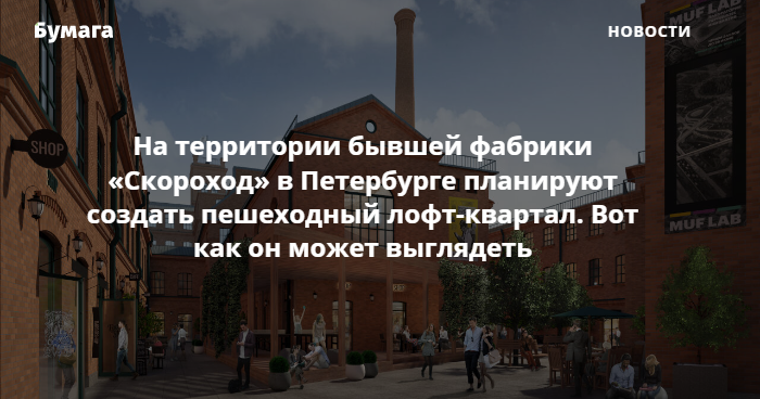 В Московском районе на территории бывшей фабрики «Скороход» планируют создать новое общественно-деловое пространство. Об этом «Бумаге» сообщили в компании,«Охта Групп», которая будет заниматься проектом.