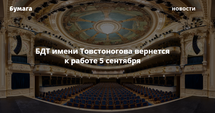 БДТ имени Товстоногова вернется к работе 5 сентября. Обновлено