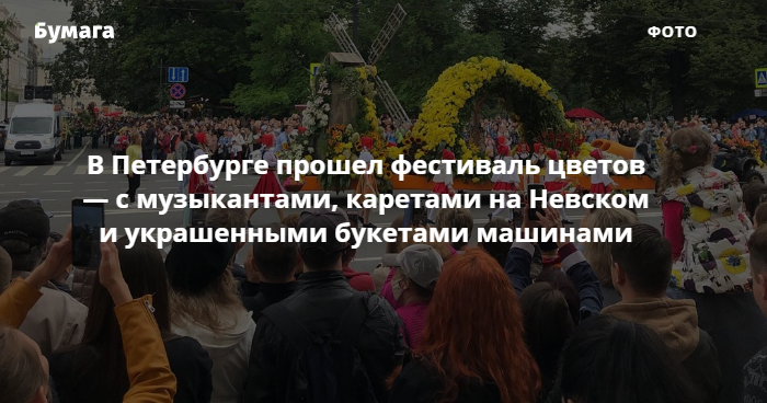 В Петербурге 29 августа прошел международный фестиваль цветов, который комитет по туризму организовал в честь медработников. От набережной Фонтанки до Дворцовой площади проехали украшенные живыми растениями автомобили и прошли артисты.