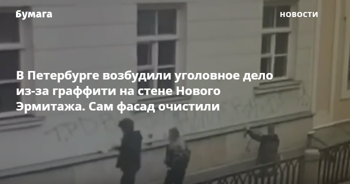 В Петербурге возбудили уголовное дело из-за граффити на стене Нового Эрмитажа