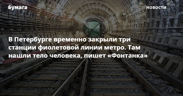 Утром в понедельник в Петербурге закрыли станции «Дунайская», «Проспект Славы» и «Шушары». Там проводят оперативно-следственные мероприятия из-за найденного тела, пишет «Фонтанка» со ссылкой на пресс-службу метрополитена.