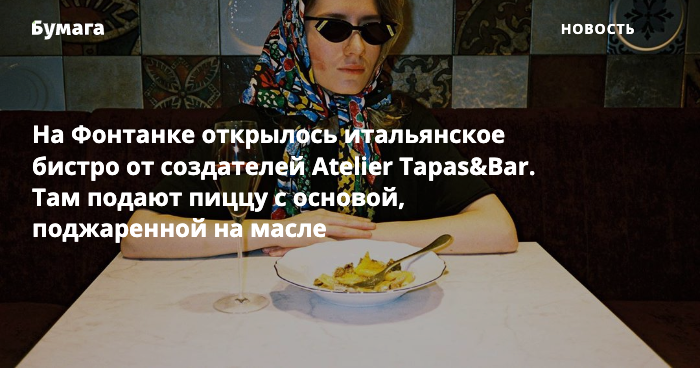 На Фонтанке открылось итальянское бистро от создателей Atelier Tapas&Bar