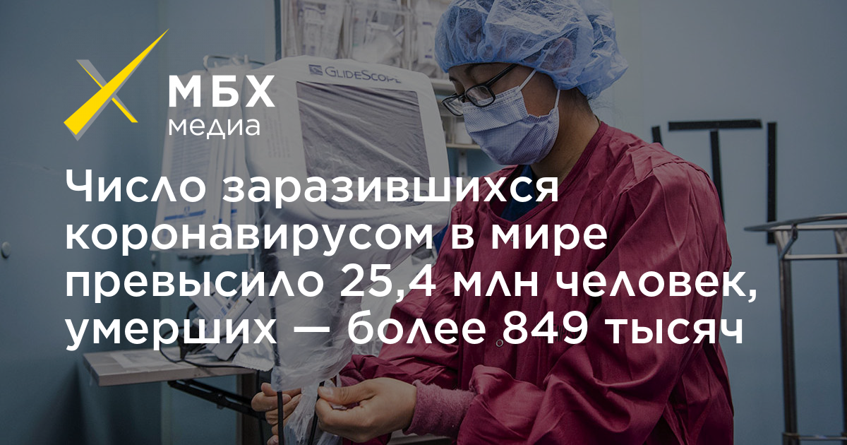 С начала пандемии коронавируса во всем мире инфекцией заразились более 25,4 млн человек, число умерших превысило 849 тысяч, свидетельствуют данные университета Джонса Хопкинса.