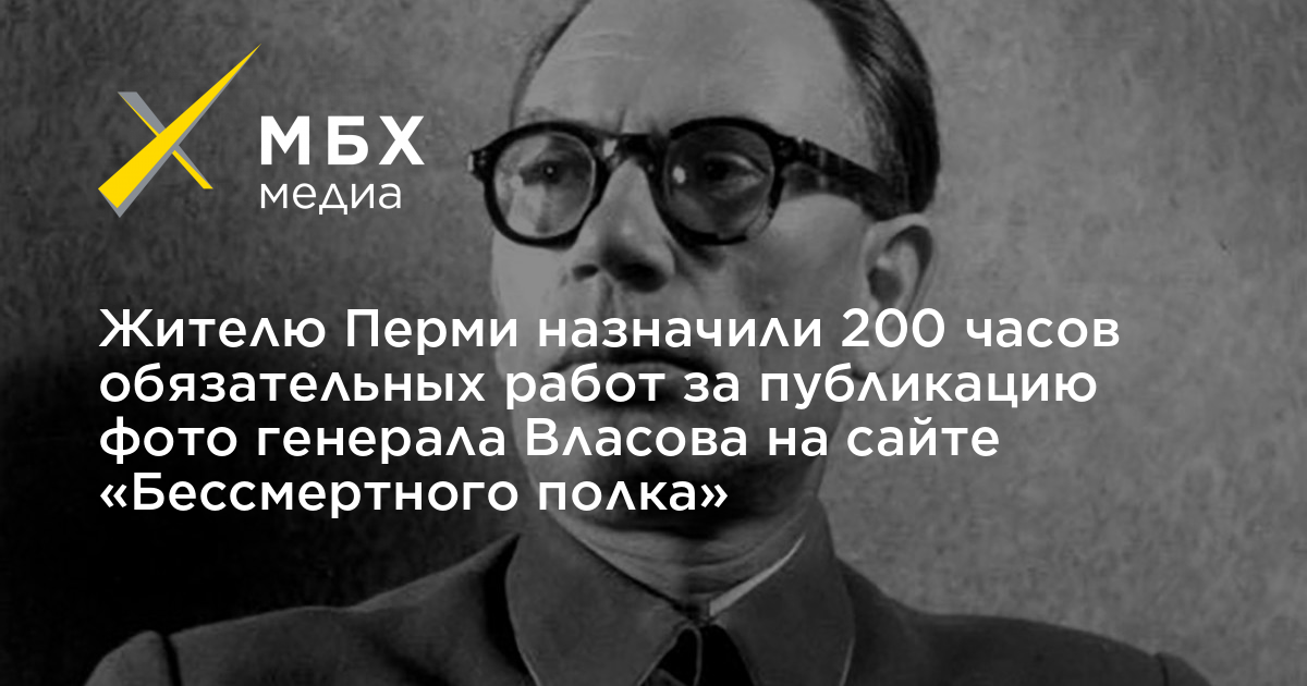 Жителю Перми назначили 200 часов обязательных работ за публикацию фото генерала Власова на сайте «Бессмертного полка»
