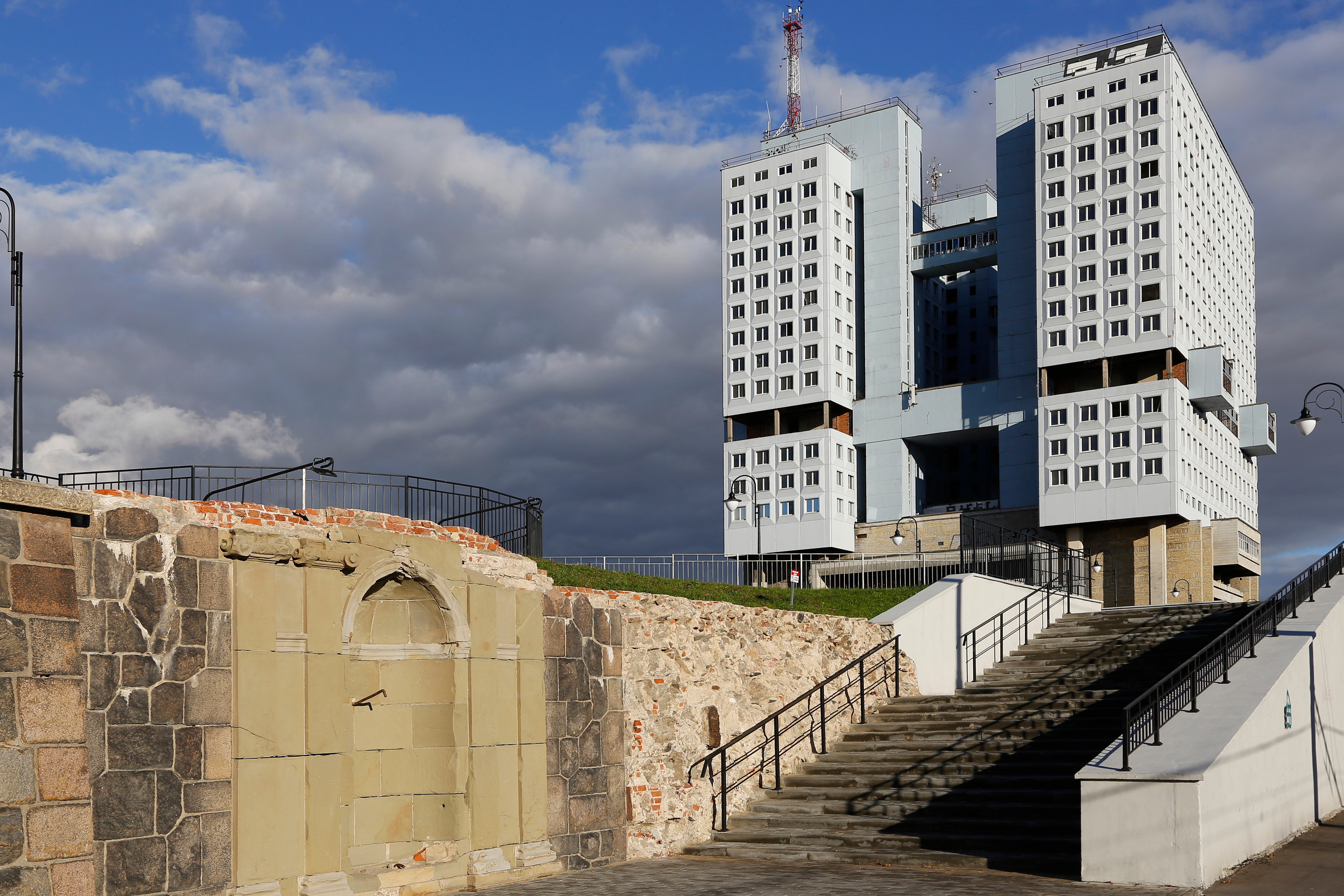 Дмитрий Булатов: Православный собор рядом с Лениным, рядом с рынком. И вот эти два гриба растут. А надо сказать без обиняков, что здесь конфессиональная война развернулась со страшной силой. Везде в России уже официально, что там говорить, православная религия возведена в ранг официоза. Здесь в советские времена ничего такого не было, все пресекалось на корню. Форпост страны, милитаристское, рыбацкое сознание. После этого пошли ростки всякие, а потом грибы такие, монстры. И исторические амбиции через них проглядывают, одна – немецкая амбиция, а здесь – другая амбиция.