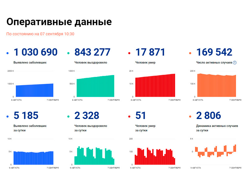Из больниц за последние сутки выписано 2328 человек, общее число выздоровевших пациентов увеличилось до 843 277 человек.