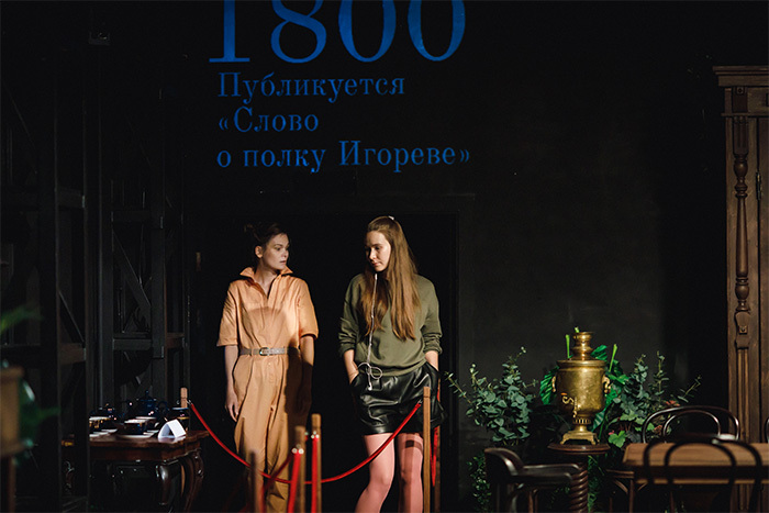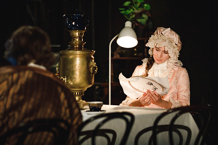 - В спектакле есть интерактивный элемент: перед началом показа артисты спрашивают зрителей, какие вопросы они задали бы русским классикам — Пушкину, Достоевскому, Толстому, Салтыкову-Щедрину и другим.