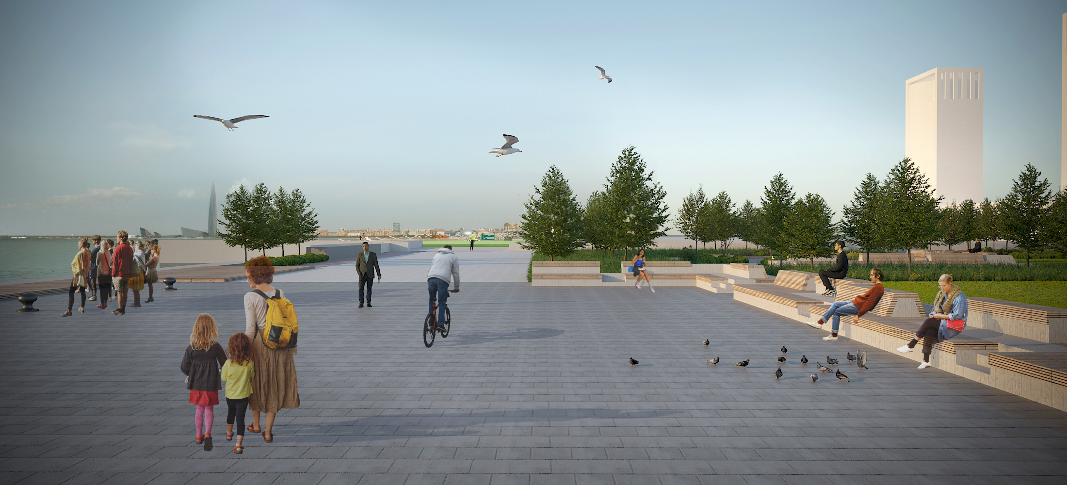В Смольном показали проект благоустройства сквера Александра Володина на пересечении Морской набережной и набережной реки Смоленки.