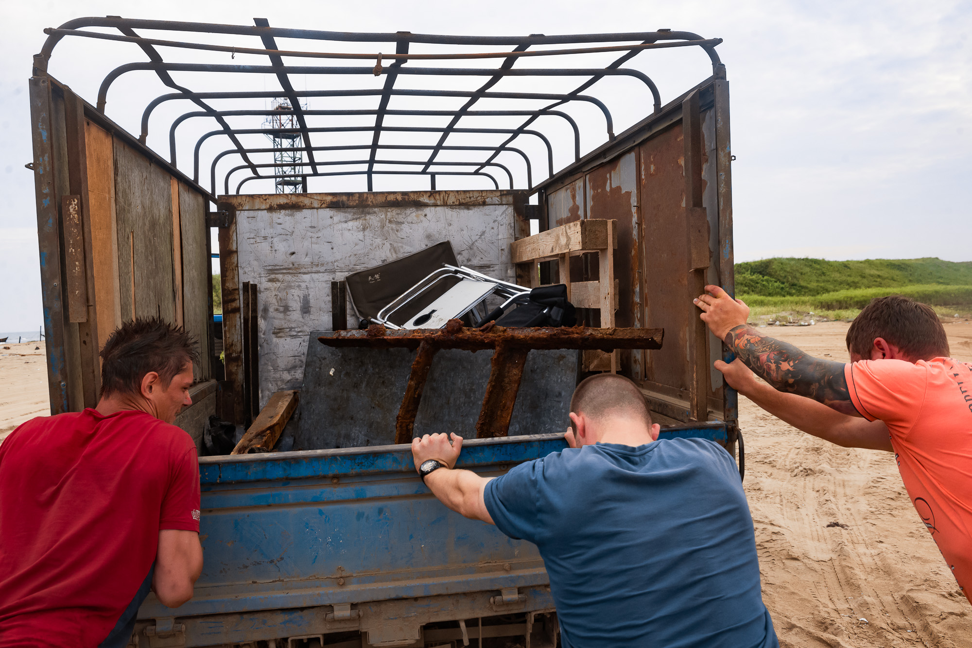 Туристы не обращают внимания на этот вой: у них заботы поважнее – машина увязла в песке. Мужчины толкают машину сзади, а выбравшись на твердую почву, грузят в кузов корму полусгнившей шхуны. Объясняют: в хозяйстве пригодится.