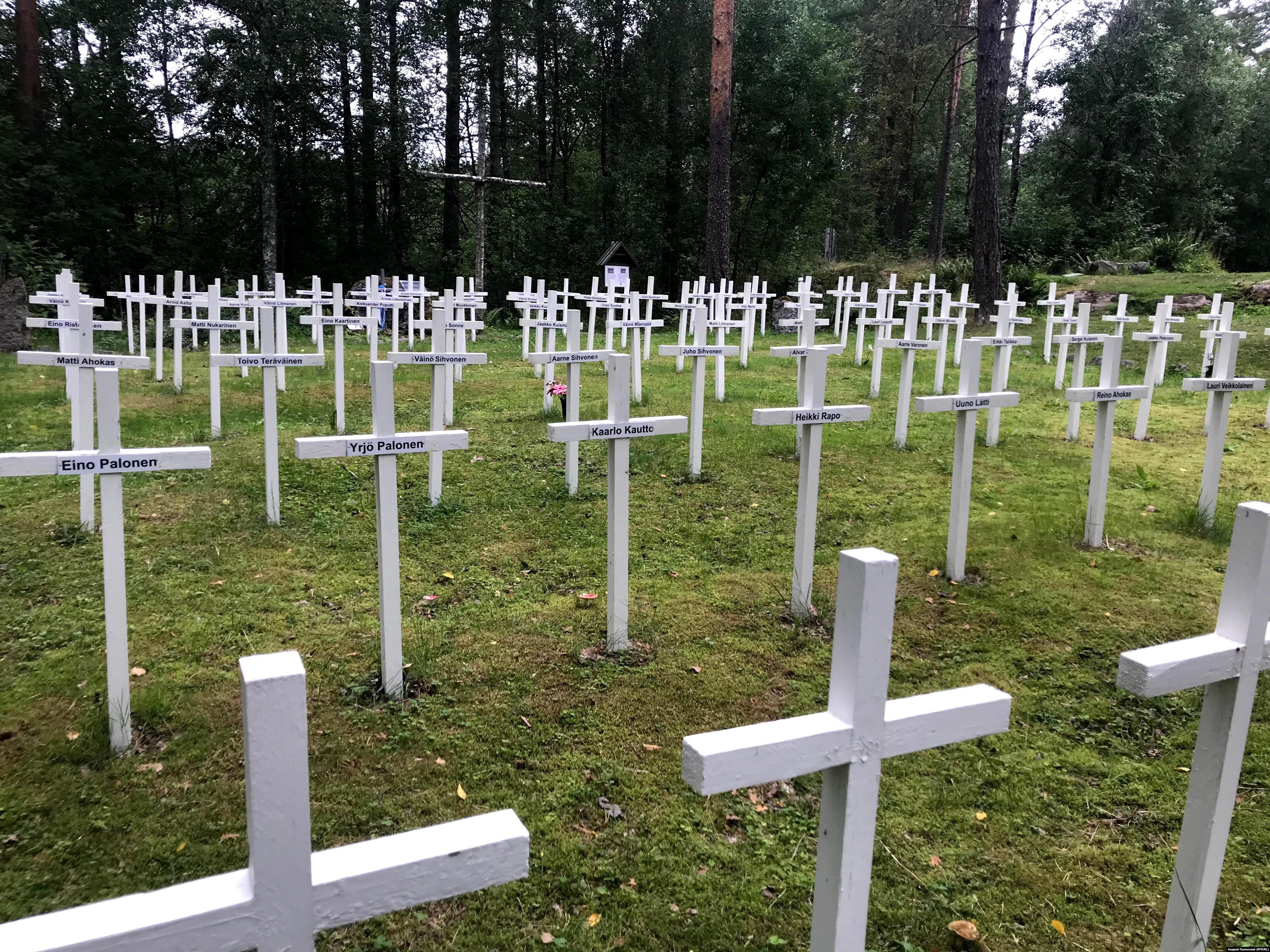 А если подняться на колокольню, то можно ударить в большой колокол, и гулкий стон разнесётся над холмом Роккапата и бескрайними приладожскими лесами. На него вряд ли обратят внимание местные жители, - мало ли как там туристы забавляются, - но, быть может, его услышат мёртвые, лежащие у подножия храма под белыми деревянными крестами ополченцы из Лумиваары, погибшие, защищая свою малую родину в годы великих войн.