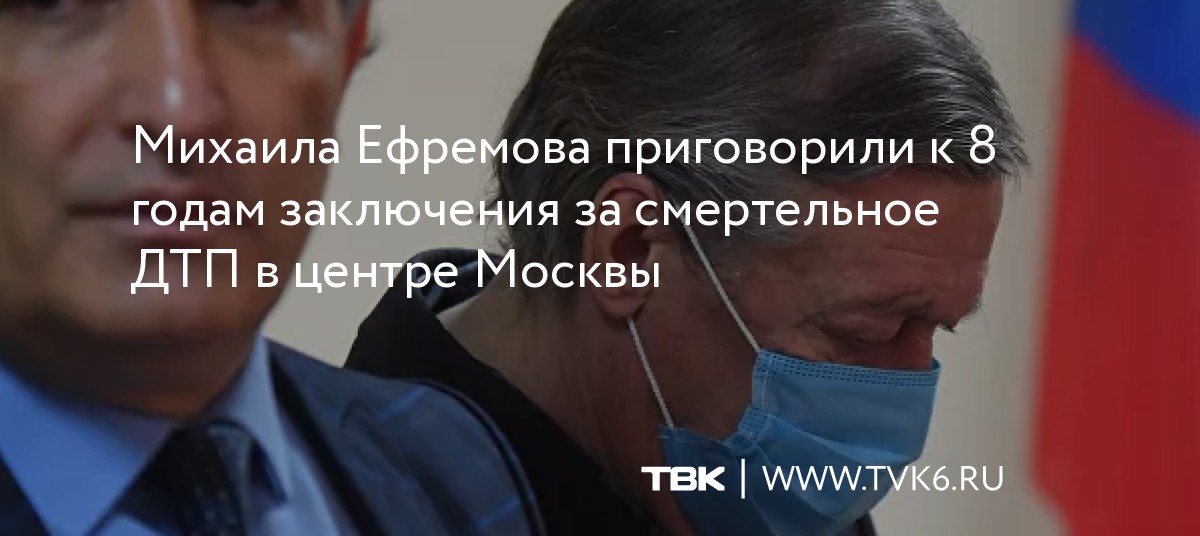 Актера Михаила Ефремова приговорили к 8 годам заключения в колонии общего режима. Приговор огласили 8 сентября.