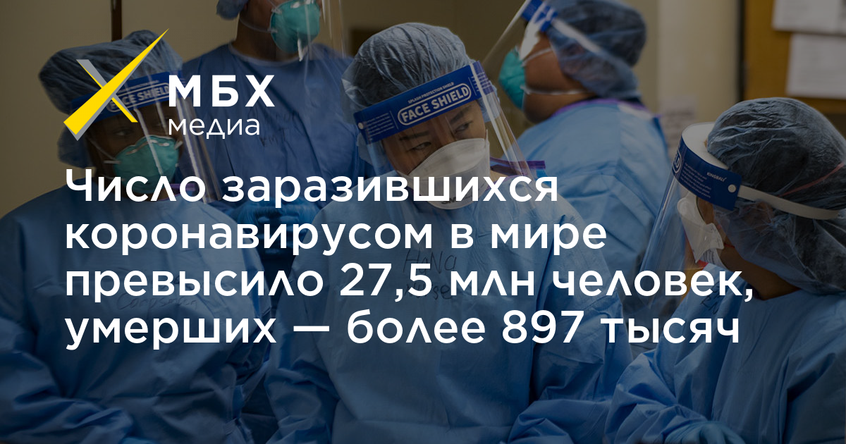С начала пандемии коронавируса во всем мире инфекцией заразились более 27,5 млн человек, число умерших превысило 897 тысяч, свидетельствуют данные университета Джонса Хопкинса.
