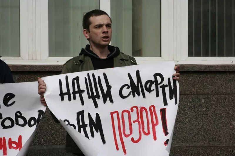 The second demonstration took place in St. Petersburg: two participants climbed the facade of the Smolny palace and hung a sign on the balcony with the slogan: “Our deaths are our shame!” Other activists brought empty coffins as “a gift” to then Governor Valentina Matviyenko. In 2004, the artist Flor — one of the founders of Front AIDS and a member of the group MoCPax — led a demonstration in Moscow under the phrase: “State Narcotics Control is closed.” They chained together the gates of the Federal Drug Control Service building, locking all the employees inside.