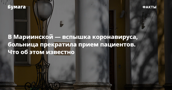Мариинская больница 9 сентября приостановила прием новых пациентов. По словам нескольких источников, причина во вспышке коронавируса — инфекцию выявили у десятков пациентов. При этом официально стационар уже больше месяца работает в обычном режиме. «Бумага» рассказывает, что известно о ситуации в Мариинской больнице.