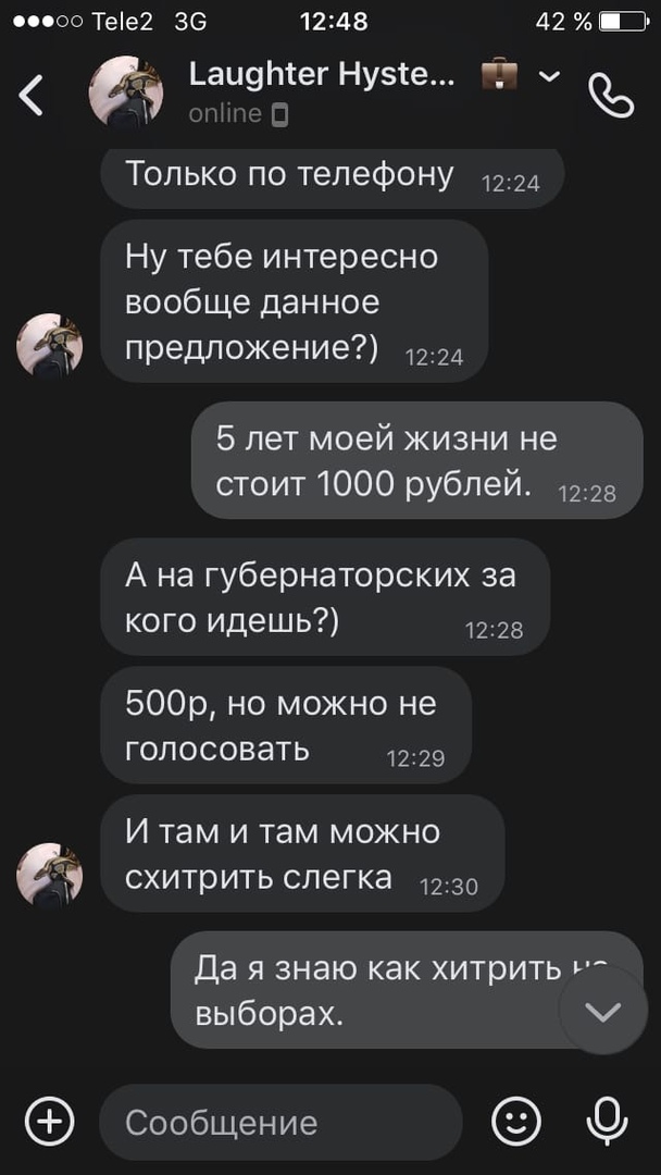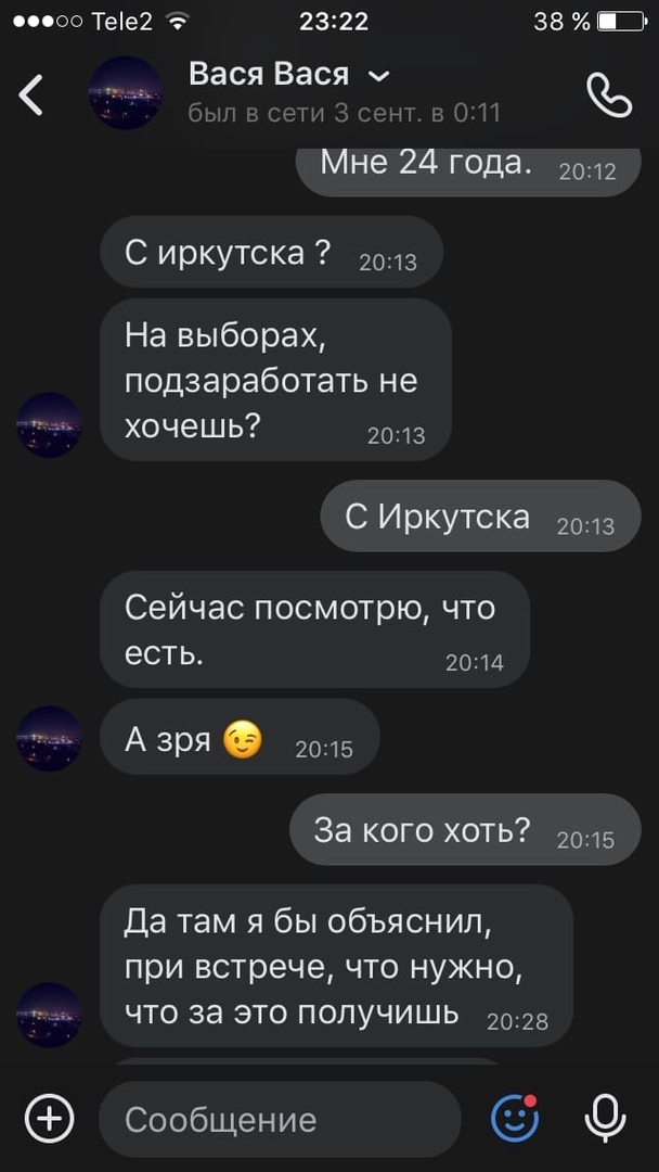"Перевод денег через "Сбербанк Онлайн" произойдёт после высылки фотографии паспорта и поставленной галочки за кандидата", – цитирует предложение скупщика автор жалобы. По её словам, фамилию кандидата ей пообещали назвать 11 сентября, а голосовать предлагалось в любой из трёх дней голосования за губернатора Иркутской области – до 13 сентября