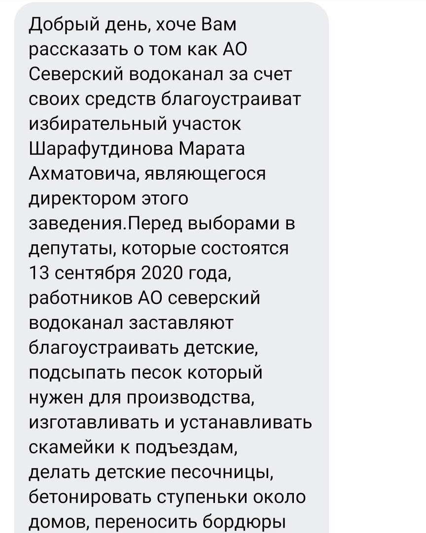 В Томской области основная масса нарушений была озвучена жителями областного центра и города Северск. Так, житель Северска сообщил в одной из местных групп во "ВКонтакте" о том, что сотрудников АО "Северский водоканал" заставили участвовать в "благоустройстве избирательного участка директора компании", кандидата в депутаты думы Северска от партии "Единая Россия" Марата Шарафутдинова.