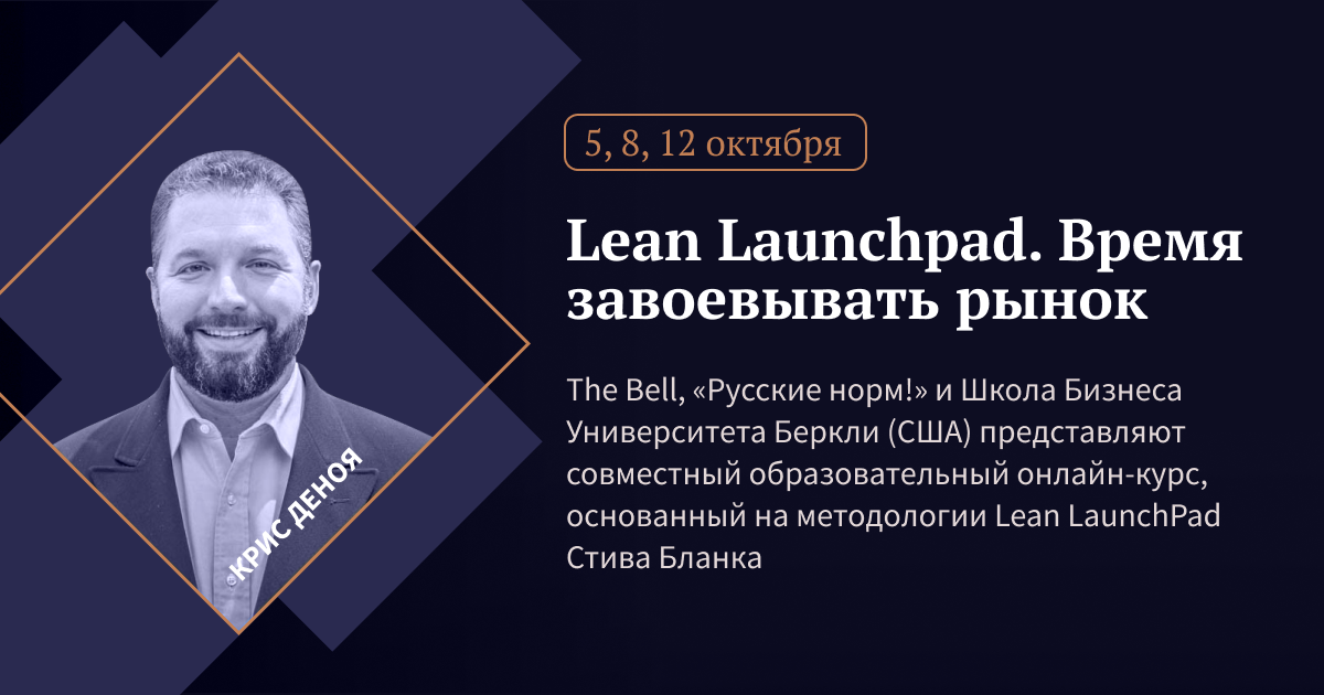 The Bell и «Русские норм!» представляют онлайн-курс для предпринимателей. Программа курса основана на методологии Lean LaunchPad Стива Бланка. Курс проведут исполнительный директор программы предпринимательства в Школе бизнеса Калифорнийского университета Беркли Ронда Шрейдер и Крис Деноя, профессиональный коуч и тренер по методологии Lean Launchpad: