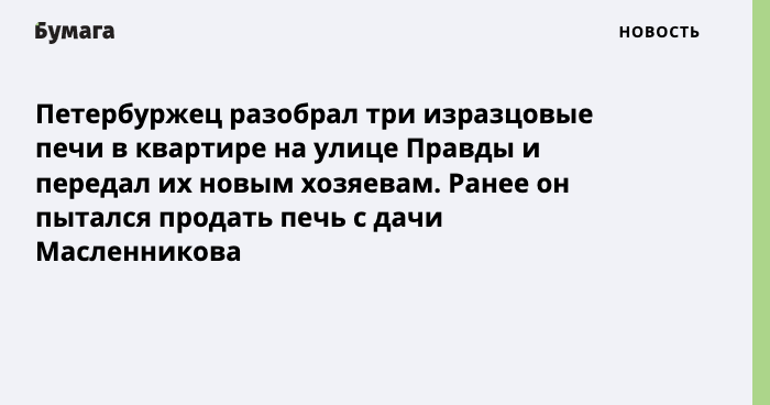Петербуржец разобрал три изразцовые печи в квартире на улице Правды и передал их новым хозяевам