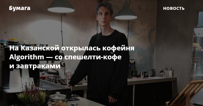 На Казанской улице, 26/27 открылась кофейня Algorithm со спешелти-кофе и завтраками. Об этом сообщается на странице заведения во «ВКонтакте».