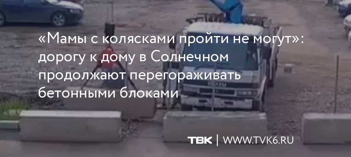 «Мамы с колясками пройти не могут»: дорогу к дому в Солнечном продолжают перегораживать бетонными блоками