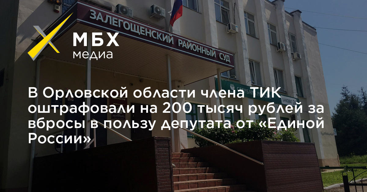 Залегощенский районный суд Орловской области оштрафовал на 200 тысяч рублей зампредседателя территориальный избирательной комиссии Ольгу Абанину за фальсификации на выборах депутатов Госдумы 8 сентября 2019 года. Соответствующее постановление «МБХ медиа» обнаружило в картотеке суда.