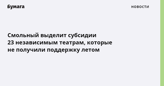 В июле независимые театры пожаловались, что остались без субсидий во время пандемии. При этом десятки миллионов рублей достались патриотическим фестивалям. После резонанса в соцсетях Смольный запустил второй этап конкурса на финансирование. «Бумага» подробно писала о ситуации.