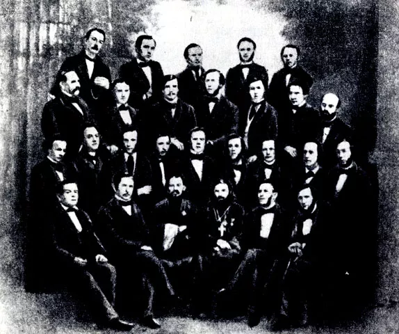 Группа преподавателей Смольного института вместе с инспектором классов К. Д. Ушинским (в первом ряду крайний справа). Фотография, 1862 г.А вот предисловие содержит несколько важных мыслей. Ушинский различает педагогику в обширном (вышеописанном) и узком (практическом) смысле слова. Он проводит последовательную аналогию с медициной (и если есть медицинские факультеты, но нет педагогических, то потому, что о здоровье люди заботятся, а о воспитании — нет). Еще он пишет (я уже обращался к этой мысли): «Если педагогика хочет воспитывать человека во всех отношениях, то она должна прежде узнать его тоже во всех отношениях. В таком случае, заметят нам, педагогов еще нет, и не скоро они будут. Это очень может быть; но тем не менее положение наше справедливо. Педагогика находится еще не только у нас, но и везде в полном младенчестве, и такое младенчество ее очень понятно, так как многие из наук, из законов которых она должна черпать свои правила... далеко еще не достигли своего совершенства». Перед судом невоплощенного еще идеала существующее воспитание выглядит жалко. «Бледное настоящее»... «Необъятное будущее»... «Нельзя не видеть возможности дать человеку с обыкновенными способностями, и дать прочно, в десять раз более сведений, чем получает теперь самый талантливый, тратя драгоценную силу памяти на приобретение тысячи знаний, которые потом позабудет без следа. Не умея обращаться с памятью человека, мы утешаем себя мыслью, что дело воспитания — только развить ум, а не наполнять его сведениями; но психология обличает ложь этого утешения, показывая, что самый ум есть не что иное, как хорошо организованная система знаний».