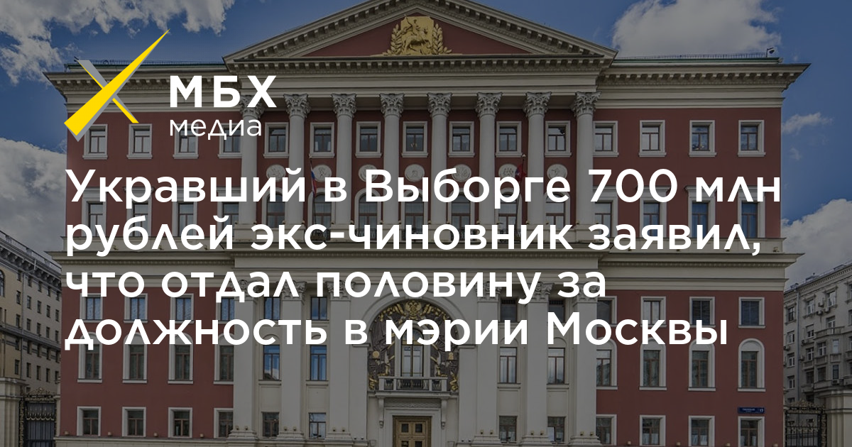 Укравший в Выборге 700 млн рублей экс-чиновник заявил, что отдал половину за должность в мэрии Москвы