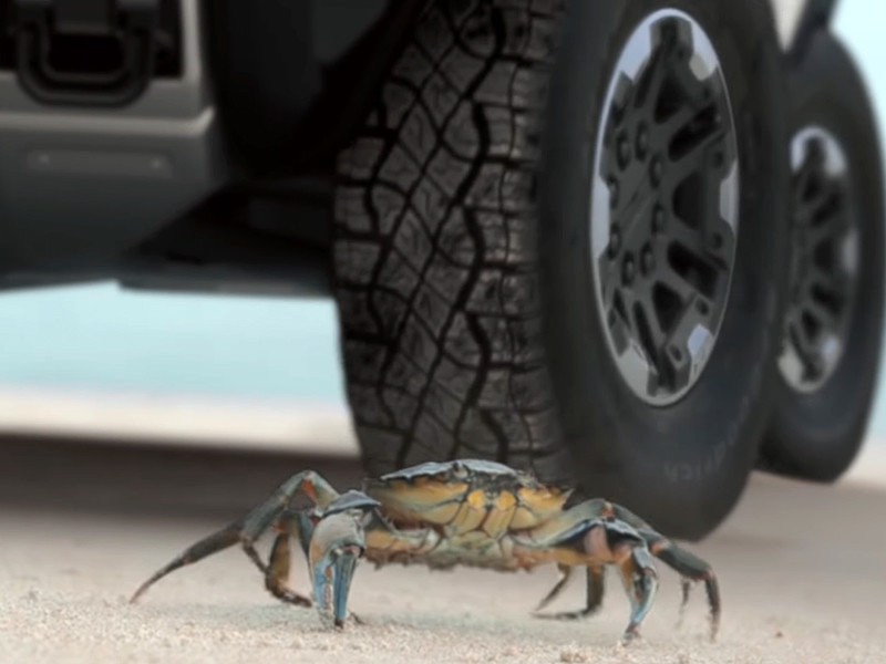 Также компания опубликовала на своем YouTube-канале короткий ролик, посвященный новинке. Судя по видео, автомобиль получит "режим краба", в котором электрический Hummer сможет двигаться по диагонали за счет одновременного поворота всех четырех колес.