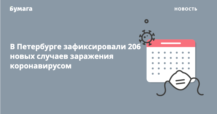 В Петербурге зафиксировали 206 новых случаев заражения коронавирусом