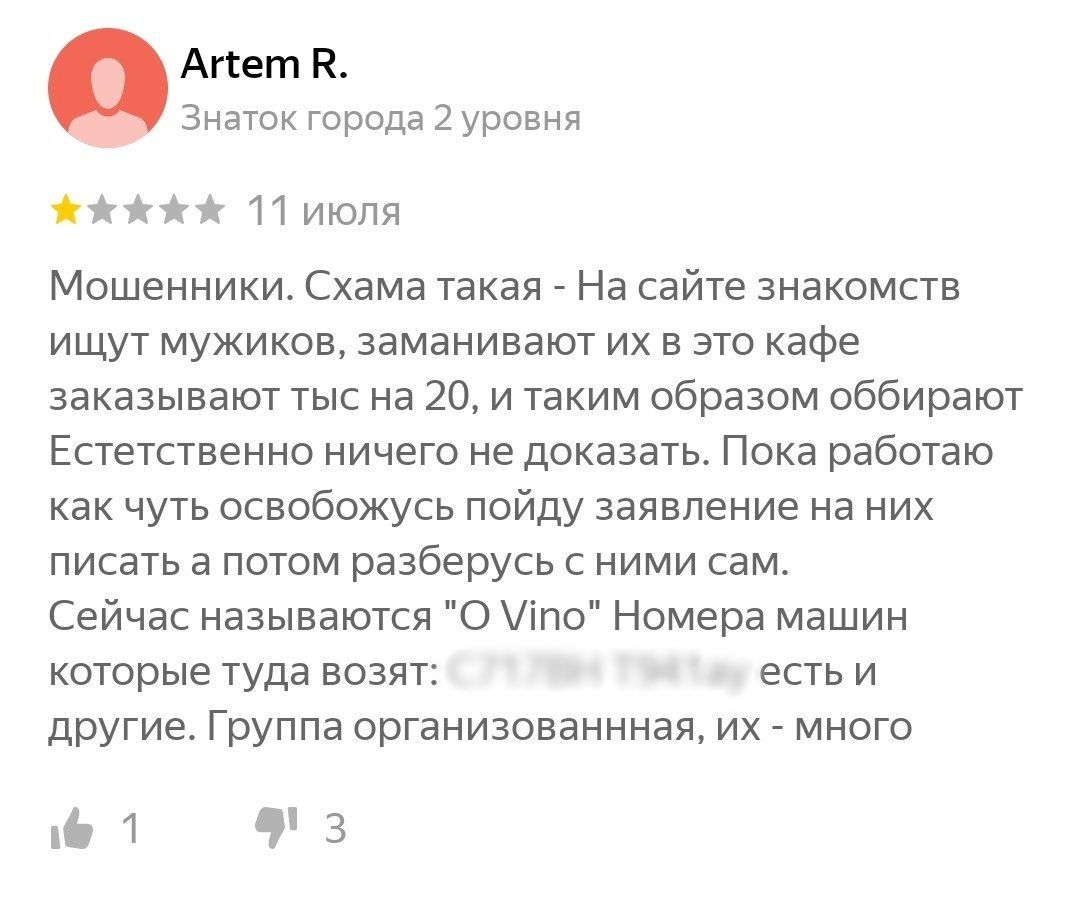 Петербуржцы жалуются на ресторан «О, вино!» на Васильевском острове с завышенными ценами, в который мужчин приглашают девушки из приложений для знакомств. Заведение работает не каждый день, информации о нем нет ни в соцсетях, ни на картах «Яндекса» и других сервисов.