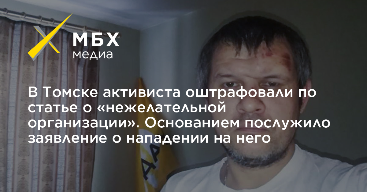 В Томске активиста оштрафовали по статье о «нежелательной организации». Основанием послужило заявление о нападении на него