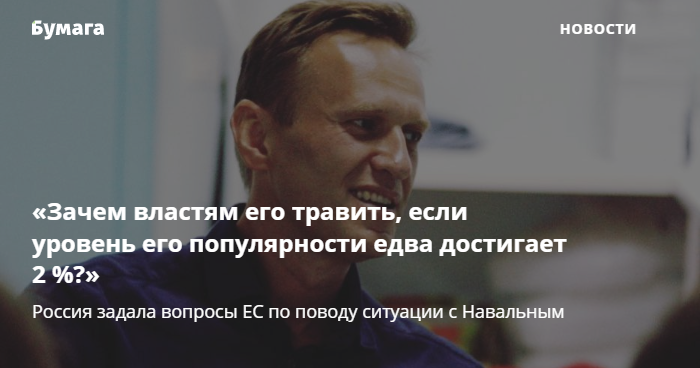Власти также спрашивают, зачем им травить Навального, если «уровень его фактической популярности едва ли достигает 2 %».