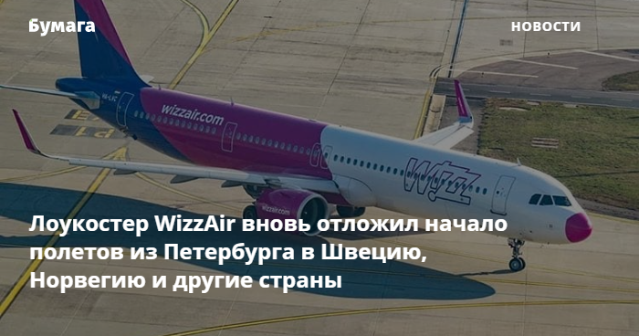 Венгерский лоукостер Wizz Air снова отложил начало полетов из Петербурга в Зальцбург, Стокгольм, Копенгаген, Осло, а также на Мальту. Информация об этом появилась на сайте компании в разделе покупки билетов.