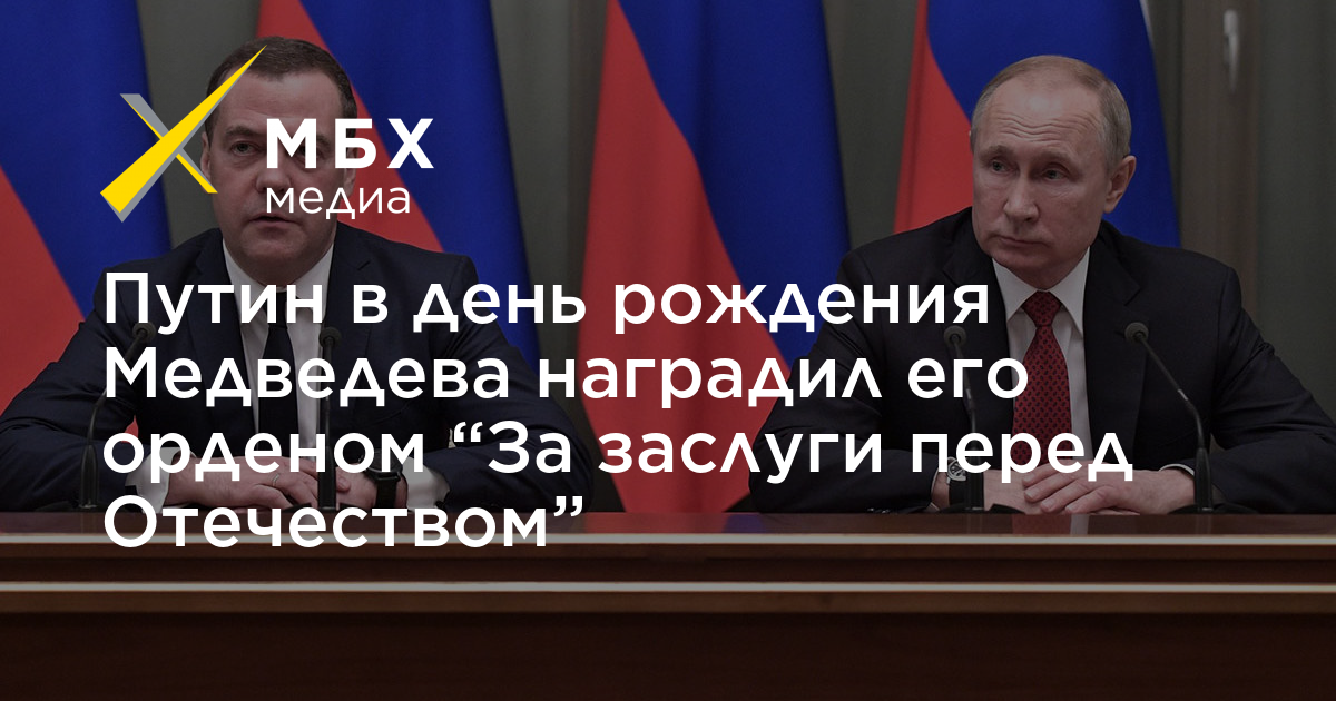 Путин в день рождения Медведева наградил его орденом «За заслуги перед Отечеством»