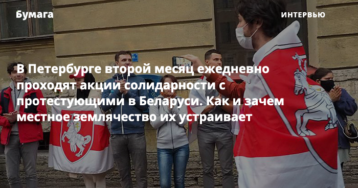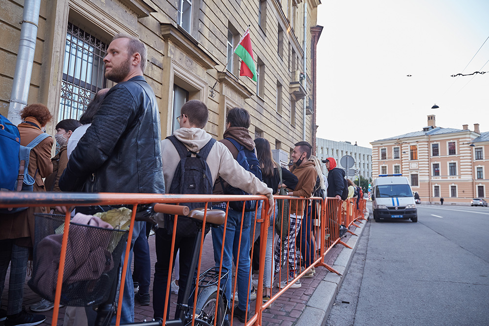 «Бумага» поговорила с одним из представителей землячества Владимиром Драгуном о том, как петербургские белорусы поддерживают протестующих, что происходит на акциях у посольства и зачем их устраивают.