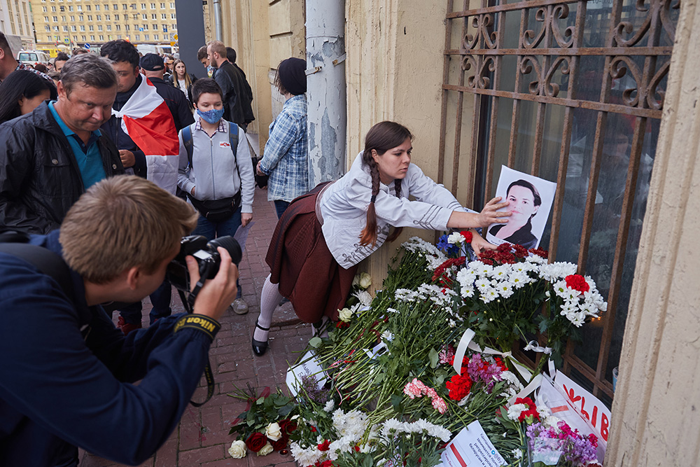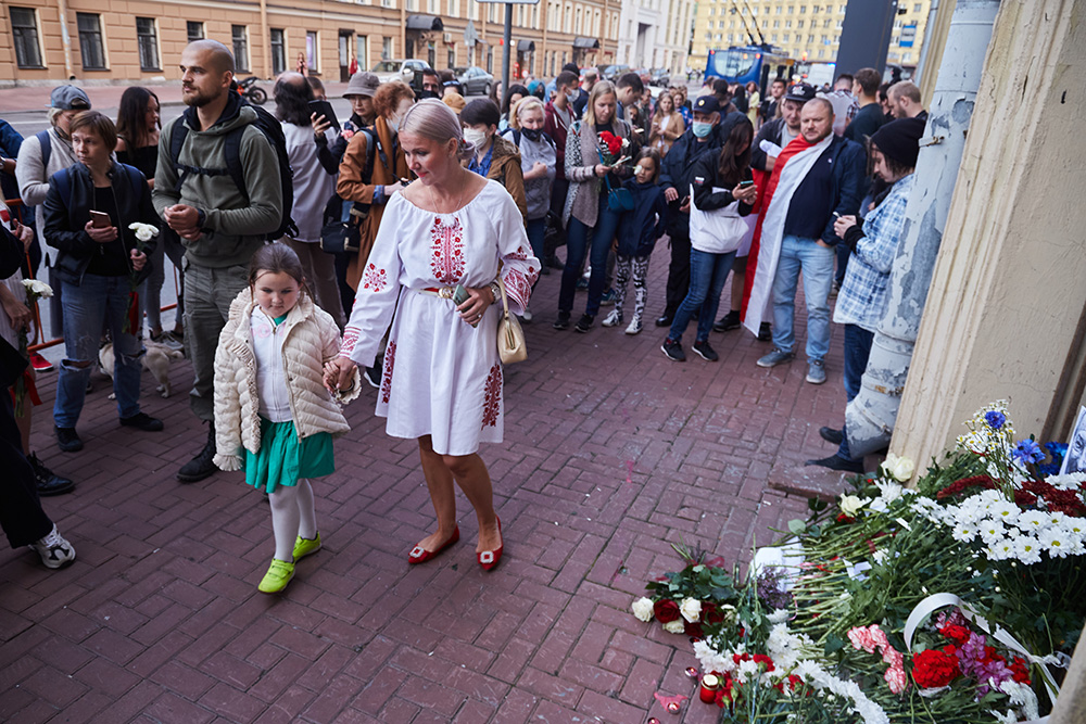 В первые недели Петербург ежедневно поддерживал протестующих в Беларуси с помощью пикетов, цветов, песен и стрит-арта.