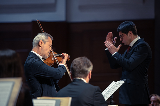 В Новосибирской филармонии после полугодового перерыва продолжился прерванный пандемией Транссибирский фестиваль. Его художественный руководитель Вадим Репин и Новосибирский академический симфонический оркестр под управлением Валентина Урюпина сыграли изысканную программу, которая сложилась в целостный кристалл, несмотря на разность представленных в ней стилей и настроений. Символично, что «распечатывало тишину» премьерное исполнение Арво Пярта — главного певца и поэта тишины. Его произведение «La sindone» («Плащаница») — посвященный Вадиму Репину и Андресу Мустонену ремейк оркестрового сочинения 2006 года. Его премьера должна была стать одним из центральных событий весеннего Транссибирского фестиваля. Но весной все сложилось известным образом — часть концертов была перенесена, часть переведена в онлайн. Перерыв в концертной жизни во многом стал фатальным, но не для этой программы: похоже, она только выиграла от отсрочивших ее обстоятельств, выгодно встроившись в череду юбилейных концертов — несколько дней тому назад Арво Пярту исполнилось 85.
