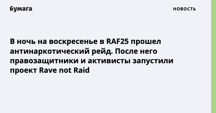 В ночь на воскресенье 13 сентября в клубе RAF25 прошел антинаркотический рейд, в котором участвовало около 50 силовиков. Внимание на это обратила «Русская служба Би-Би-Си».