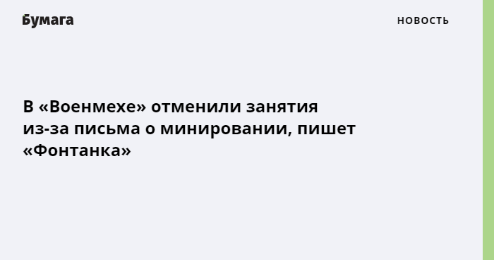 В «Военмехе» отменили занятия из-за письма о минировании, сообщает «Фонтанка»