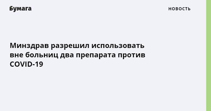 Минздрав разрешил использовать вне больниц два препарата против COVID-19