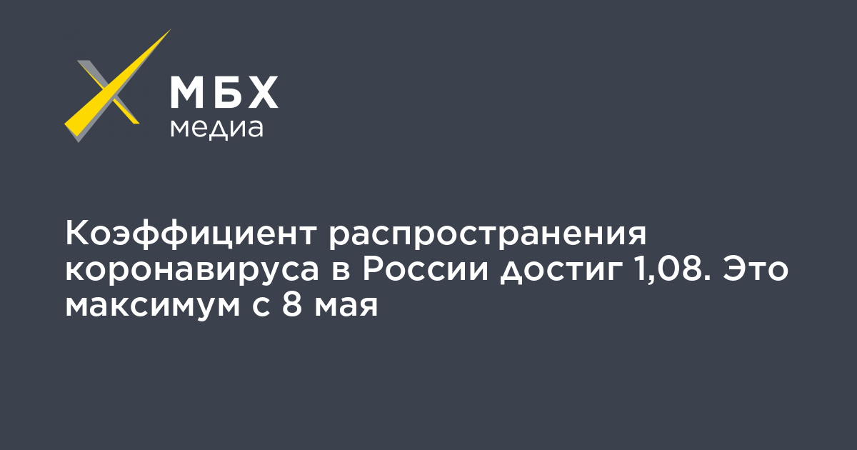 Коэффициент распространения коронавируса в России в воскресенье поднялся до 1,08 – это максимальный показатель с 8 мая. Для Москвы коэффициент оказался еще выше – 1,14, это также наивысший показатель с 8 мая.